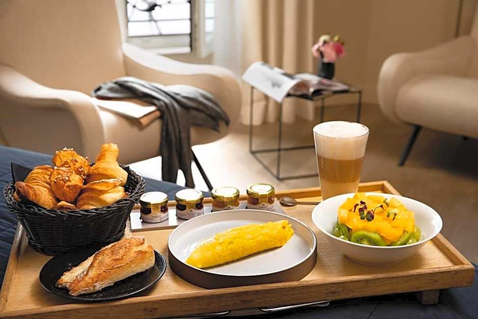 This spacious, room with attached bathroom includes: -a mini-bar with a bottle of wine -a Nespresso coffee machine -a flat-screen TV -a kettle with a selection of teas and coffees. -a bathroom with an anti-fog mirror, a half-sized bathtub and a separate shower. Free Nuxe toiletries are available.